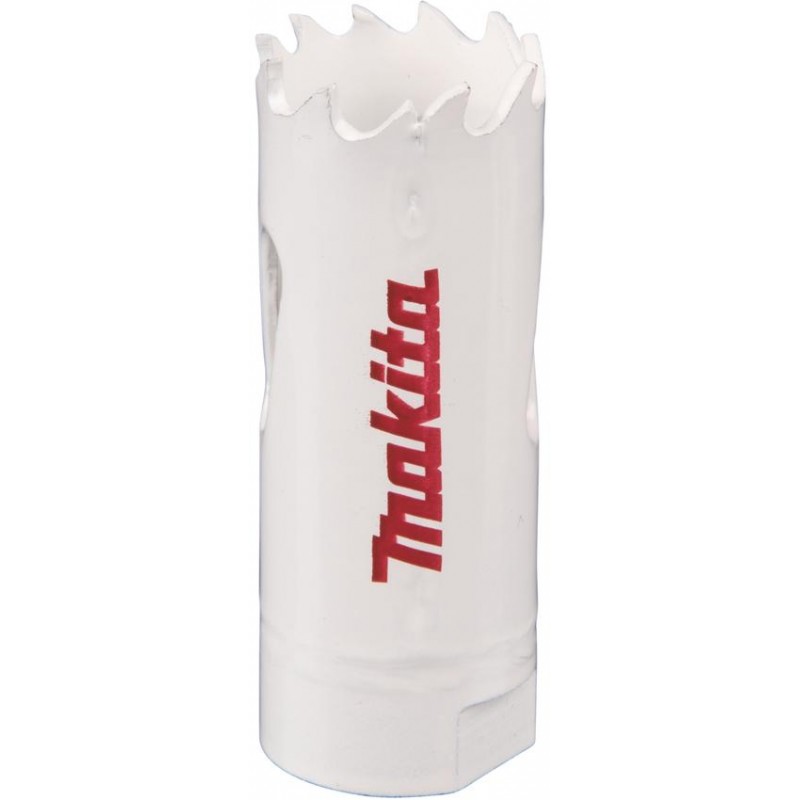 Bimetalová vrtací korunka Makita 20mm. Vhodné pro vrtání oceli, dřeva a plastu. Možno použít i na hliník a neželezné kovy. Nevhodné na nerez.