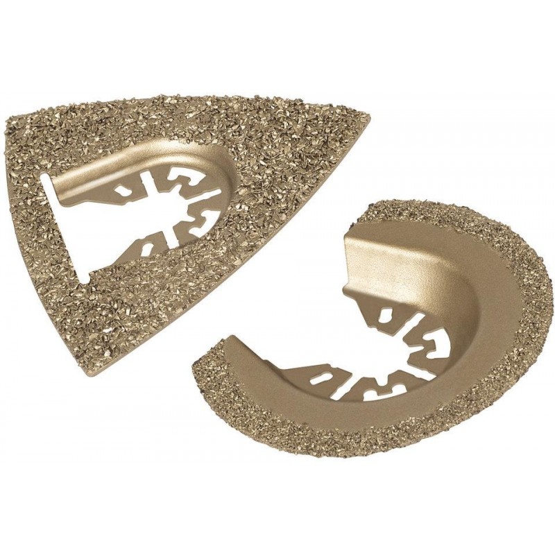 Pro kámen, dlažby, obsah: 1 x segmentový řezací plát, HM - sypaná, průměr 65 mm, 1 x brusný talíř, HM - sypaná, trojúhelníkový.