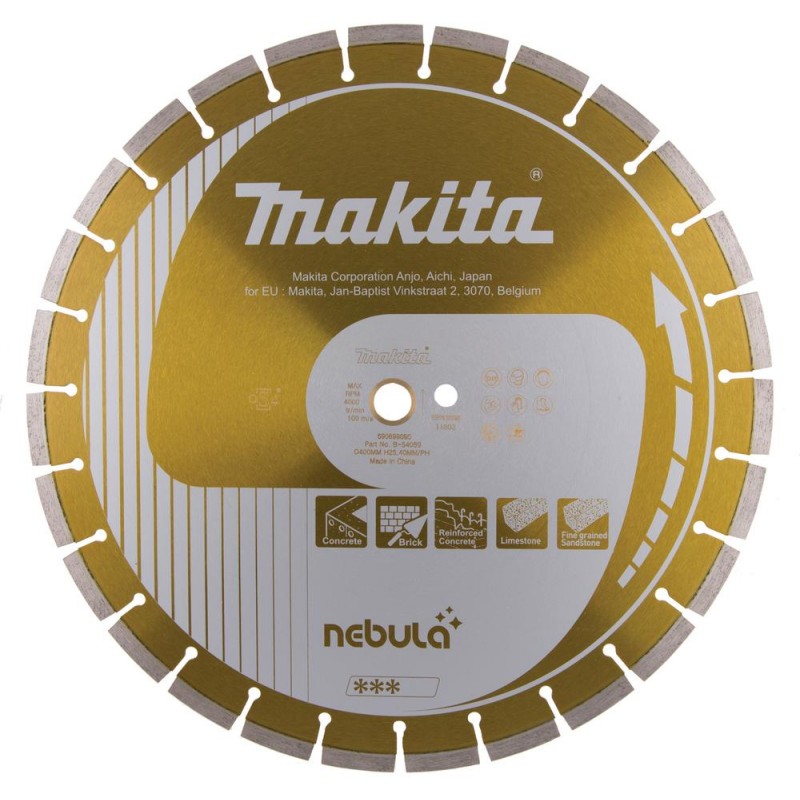 Diamantový kotouč Makita NEBUL 400mm je profesionální diamantový kotouč vhodný pro suché i mokré řezání s výškou segmentu 10mm.