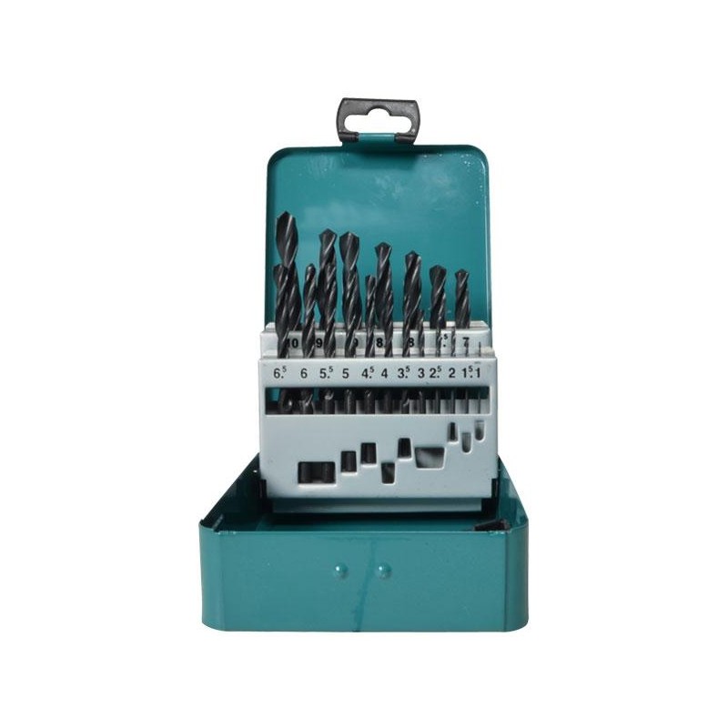 Sada vrtáků do kovu Makita obsahuje 19 kusů vrtáků v kovovém boxu: